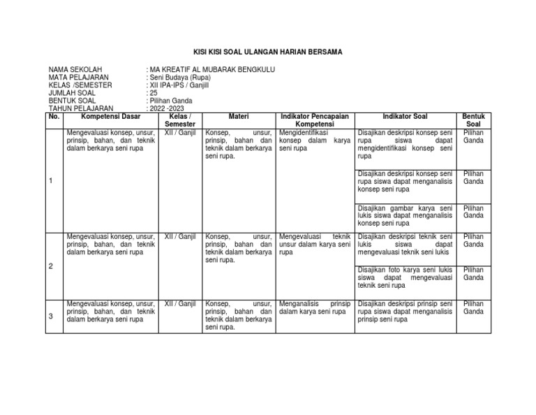 Artikel ini akan menjadi panduan komprehensif bagi guru, orang tua, dan siswa kelas 3 dalam memahami kisi-kisi UKK SBK berdasarkan KTSP, serta menyajikan contoh soal yang bervariasi untuk membantu persiapan yang optimal.