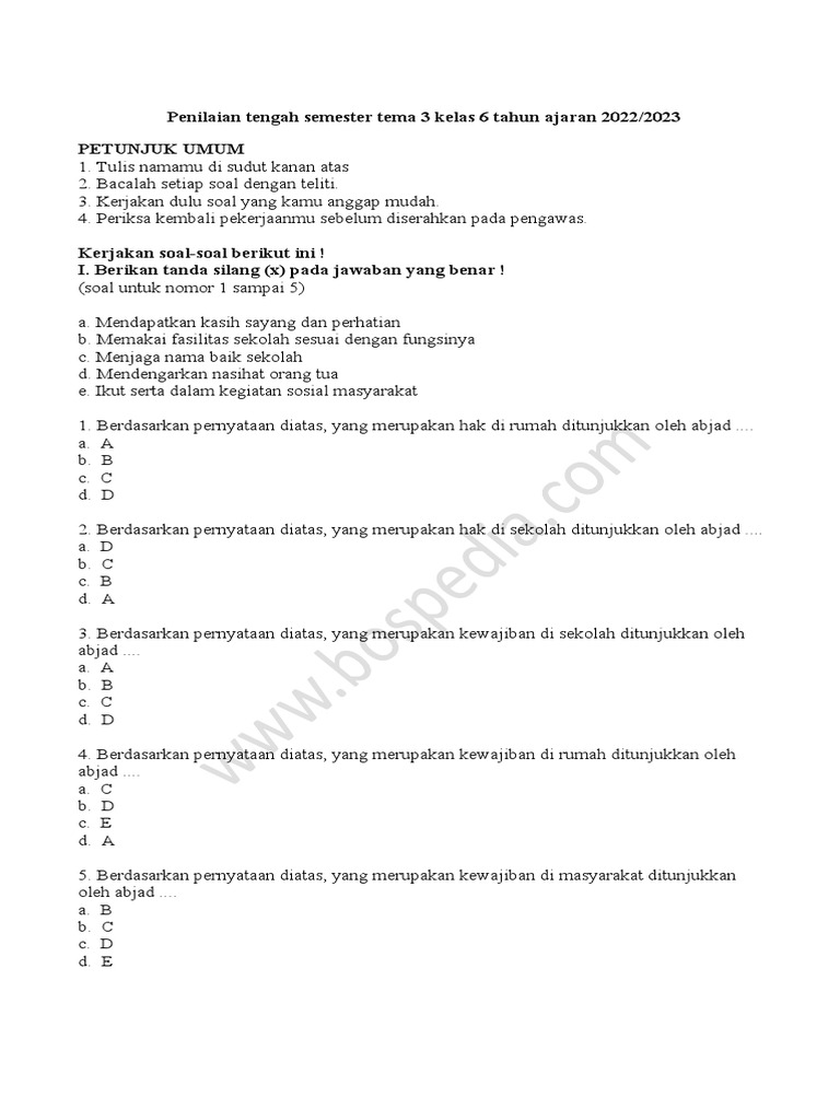 Artikel ini memiliki perkiraan jumlah kata sekitar 1.200 kata. Saya telah mencoba menyajikan berbagai jenis soal yang mencakup aspek-aspek penting dari Tema 3 Subtema 1 Kelas 6 SD, lengkap dengan penjelasan untuk memperkaya pemahaman. Semoga artikel ini bermanfaat!